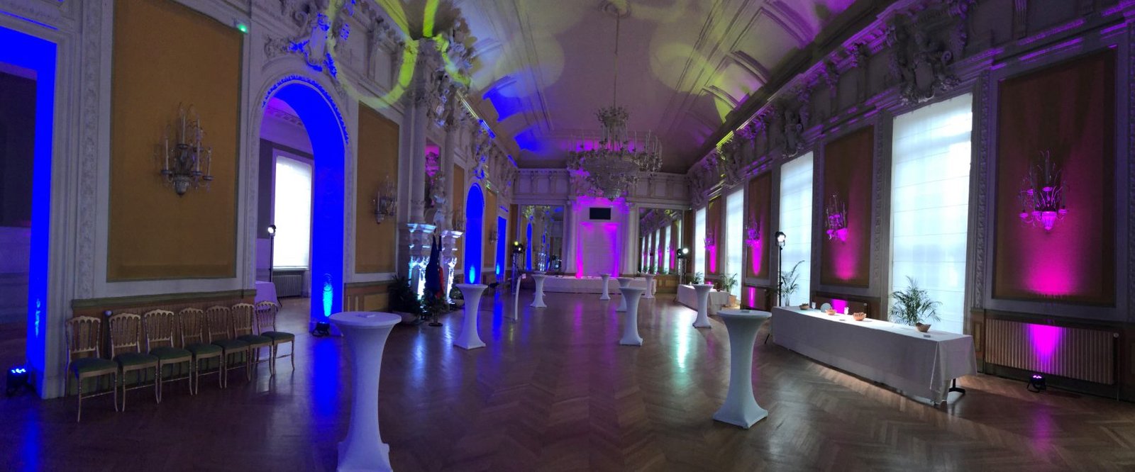 Mise en lumière & éclairage décorative d’une salle de la Mairie de Clermont-Ferrand dans le cadre d’un congrès aéronautique