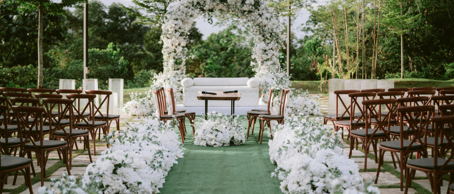 Une allée bordée de fleurs sauvages, un rayon de soleil caresse les nappes immaculées, une douce mélodie flotte dans l’air. Vos proches retiennent leur souffle, vos regards se croisent. Et puis, le « oui ». Celui qu’on attend, celui qui fait tout basculer. Autour de vous, le décor est parfait. Chaque détail raconte une histoire : la vôtre.